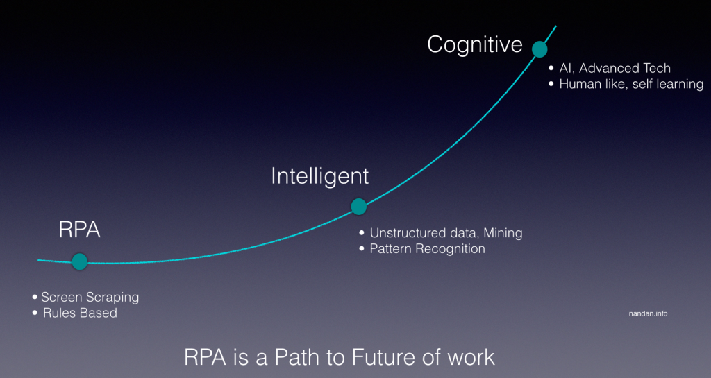 In terms of implementing RPA, some people tend to think that you do RPA first and then you get to intelligent Automation and then Cognitive. I think that’s another misunderstanding. You do not need to wait to incorporate any technologies that suit your automation.
